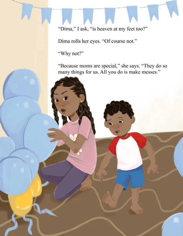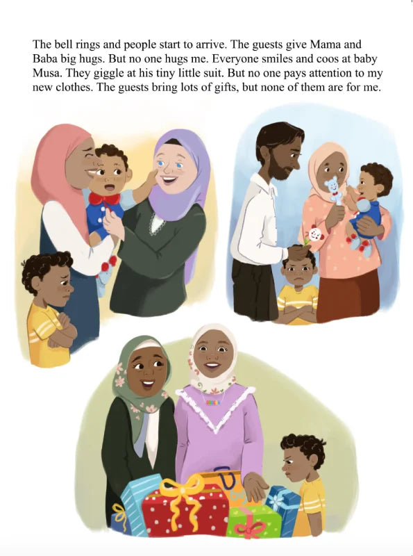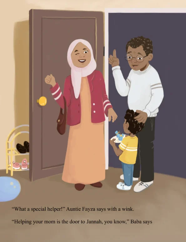 Since Ibrahim’s little brother Musa was born, Ibrahim hasn’t been feeling very special anymore. At Musa’s Aqeeqah, he learns that Heaven is at his mom’s feet, so he decides he wants heaven to be at his feet, too! Maybe if he copies what his mom does, he will finally be special again, just like her. Can Ibrahim do everything Mama does or are her shoes too big to fill?