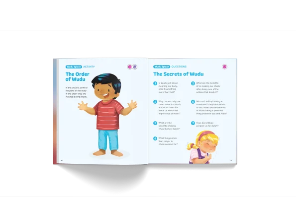 - All About the Prayer: The book also explains Wudu, the 5 daily Salah, the athan, prayer times, and how to pray together.