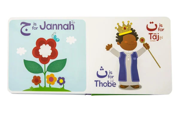 - Each letter has been paired with an everyday Islamic and Arabic word like ‘Allah’ and ‘Zamzam’ so your child can build an early association with key vocabulary.