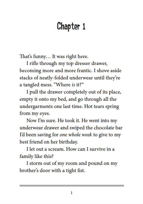 When her little brother steals her stashed treats two days in a row, something inside her snaps! She destroys his most prized possession and makes herself scarce when he’s being bullied at school.