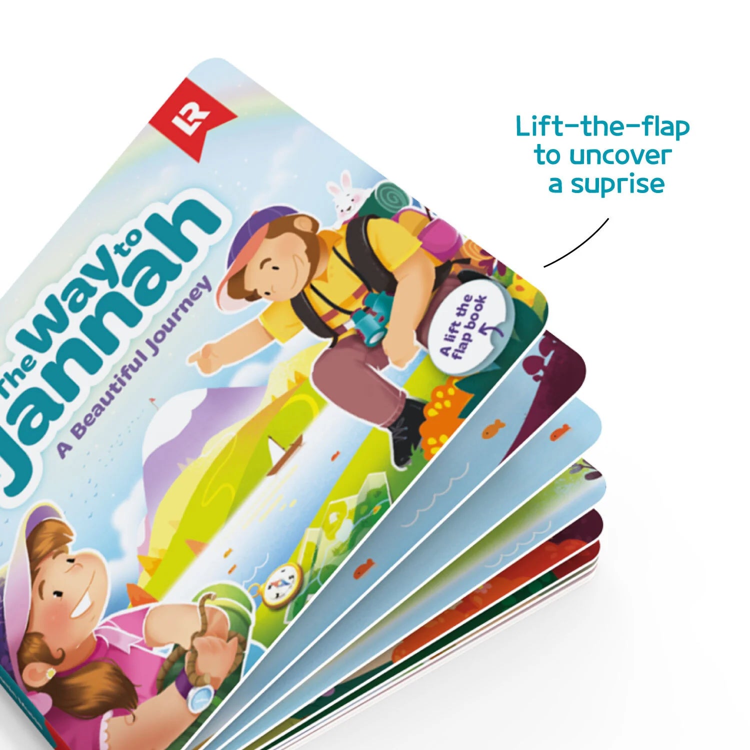 - An interactive lift-the-flap dua book that engages your child with curiosity and physical play.